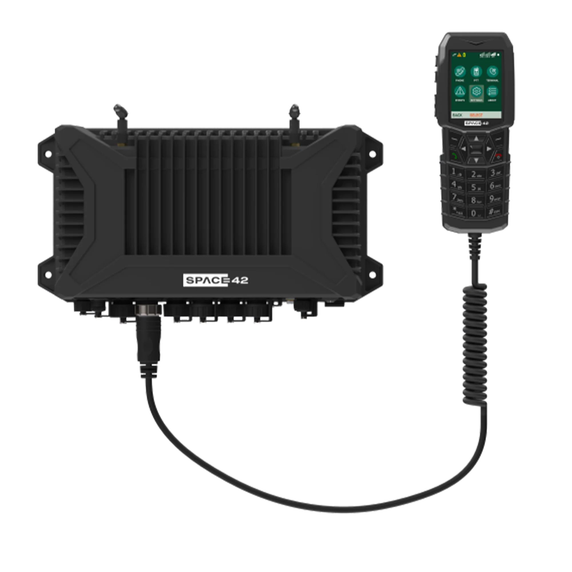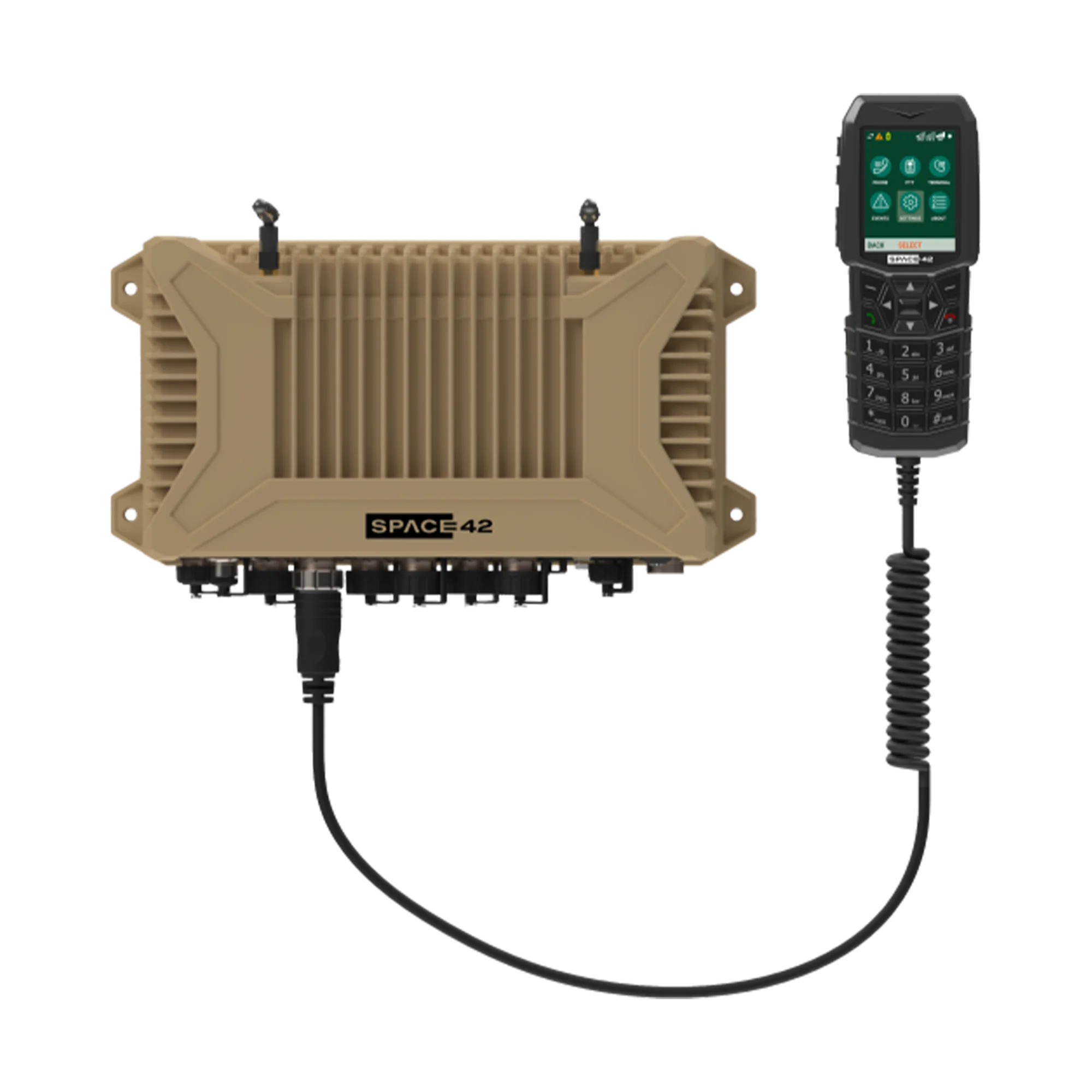 Extends VHF/UHF radio beyond line-of-sight over satellite, linking dispersed assets across land and at sea.